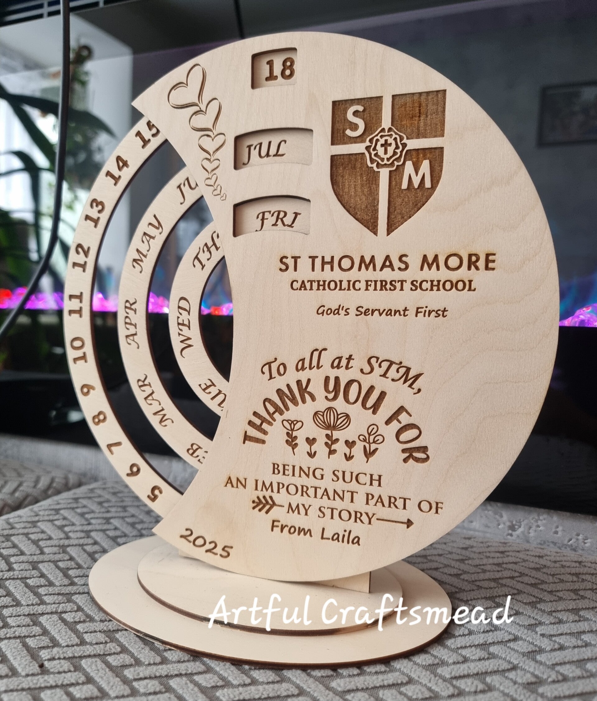 Personalised Wooden Perpetual Calendar • Teacher or School Thank You Gift • Engraved School Leavers Gift 2025