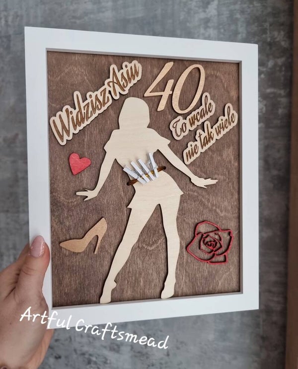 With a cheeky silhouette design, custom name, and any birthday age, this wooden frame is sure to impress and bring laughter at every party. It's a great keepsake and a fun alternative to traditional cards or envelopes!
