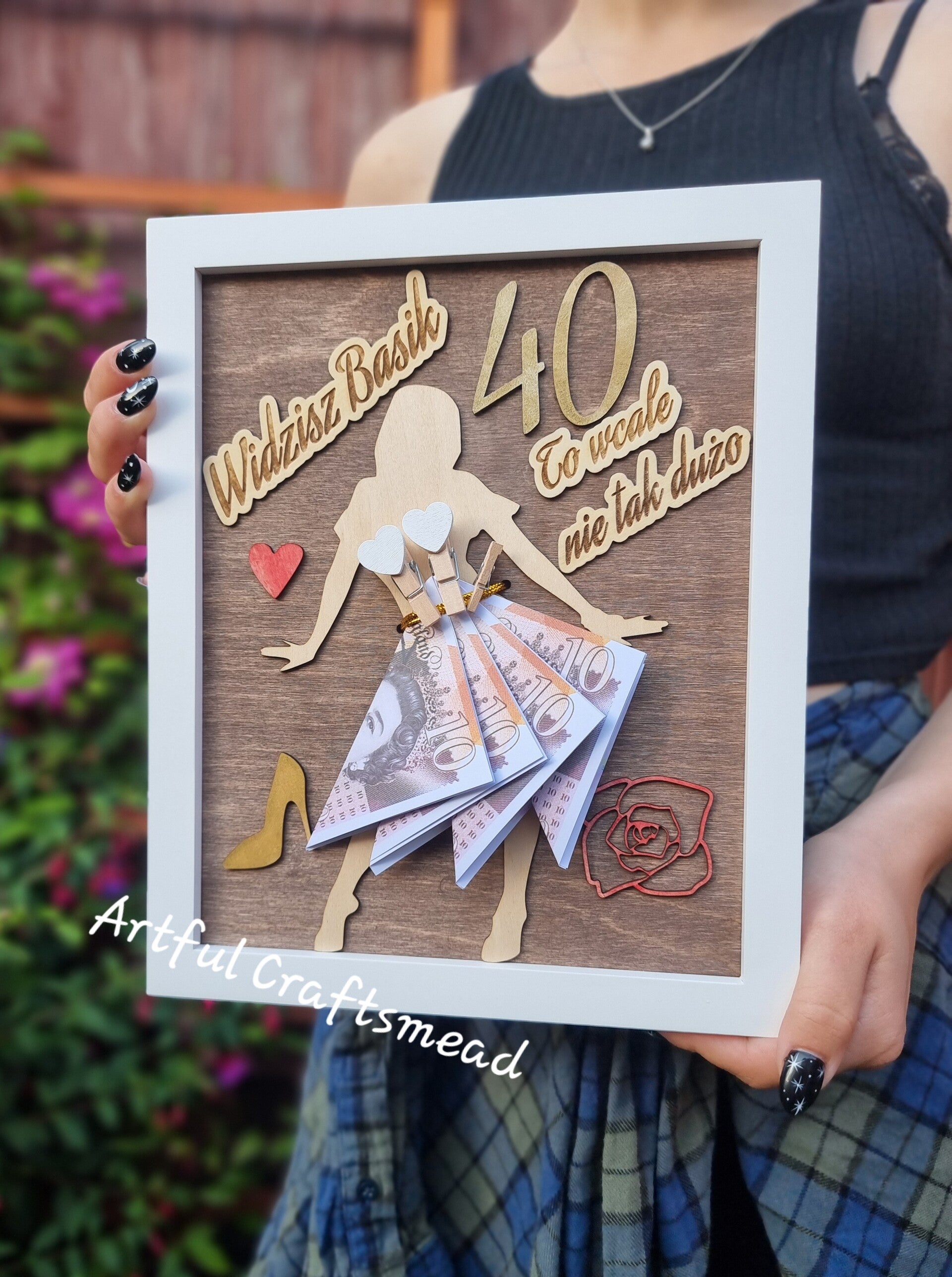 Funny Birthday Money Gift Frame โข Custom Age & Name โข Shadow Box for Banknotes