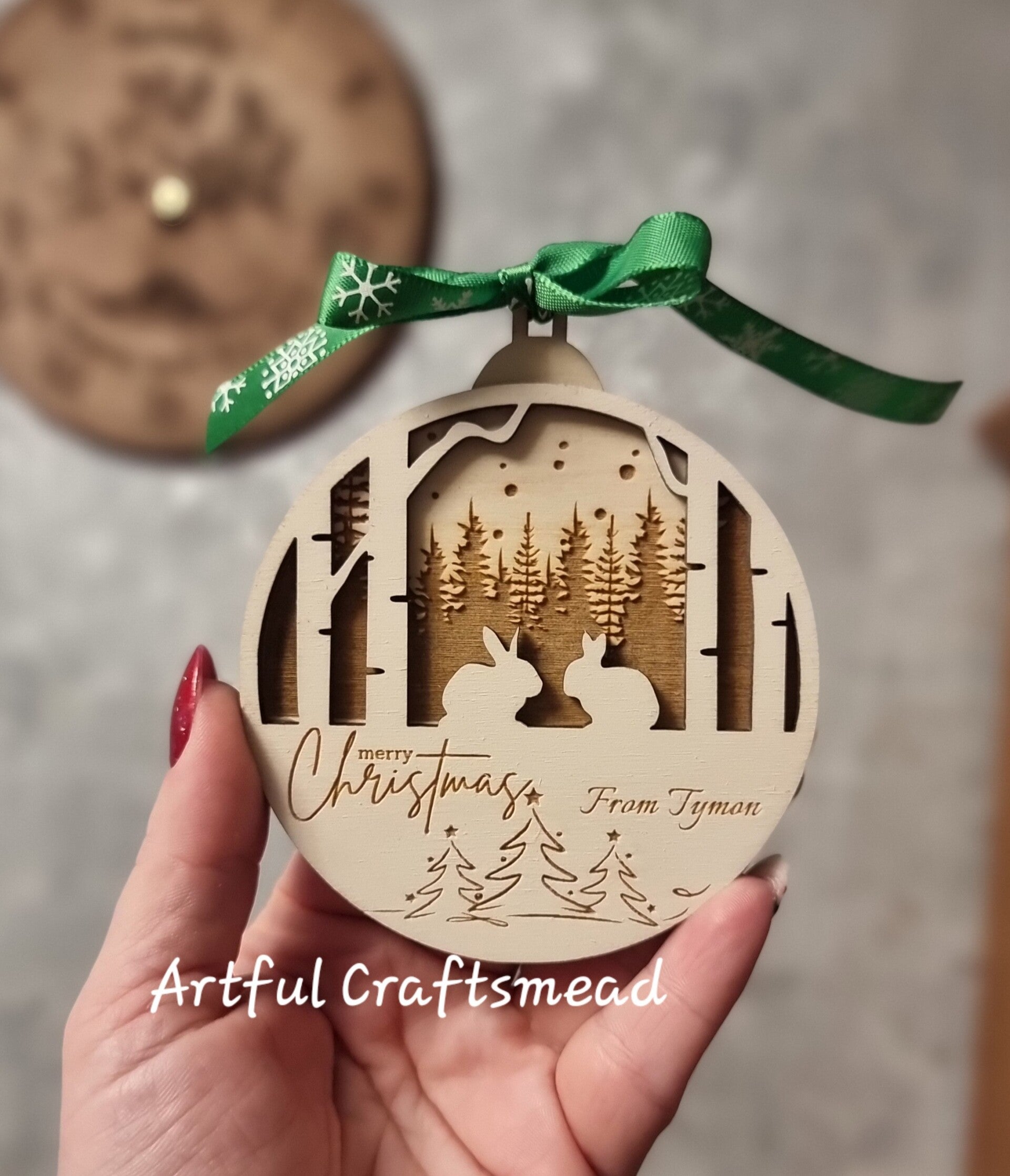 This beautifully layered wooden bauble features a cozy forest scene with two adorable silhouettes – choose between rabbits or reindeer ππ¦. A perfect rustic decoration to make your tree feel extra warm and personal this holiday season.