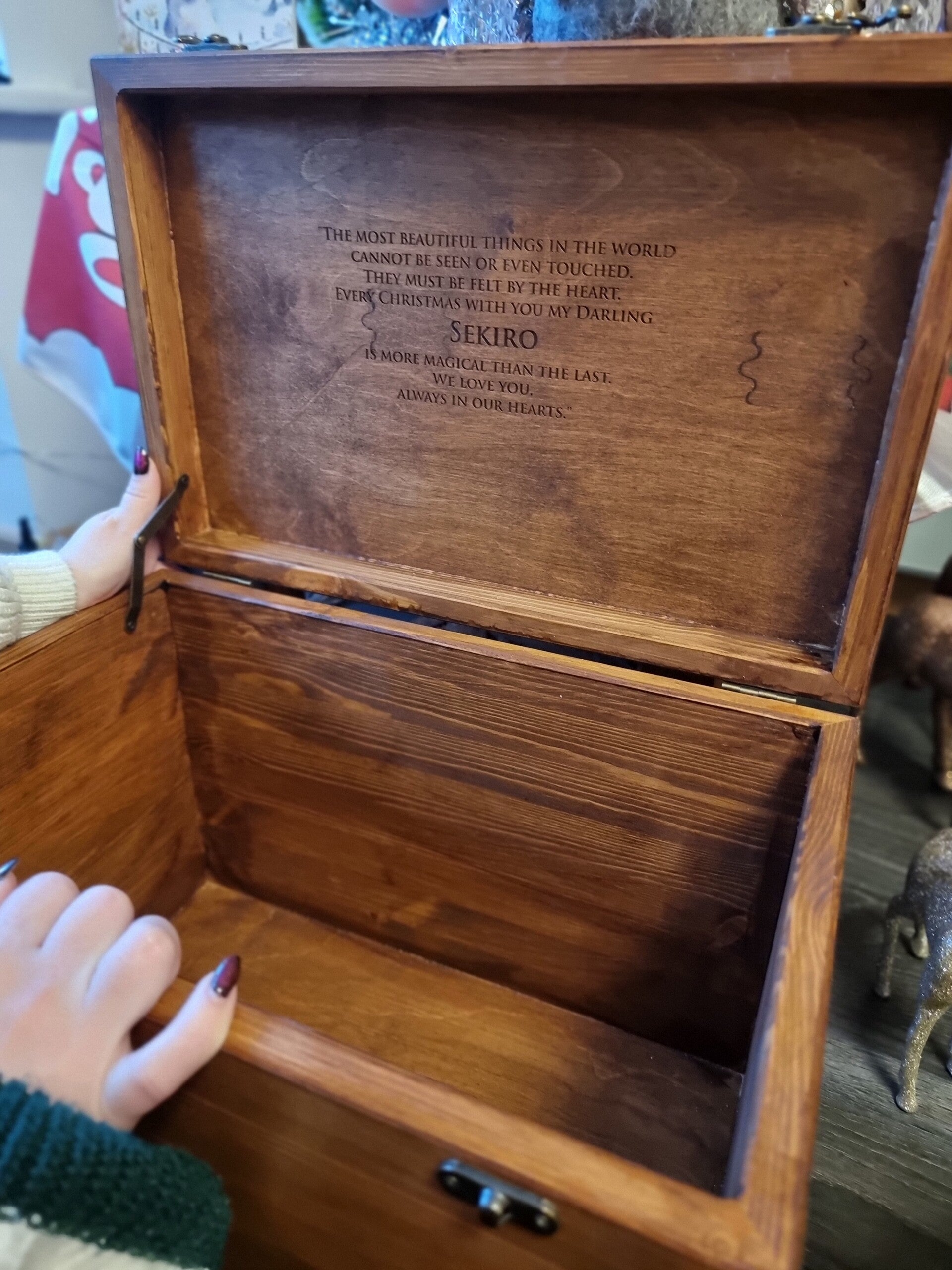 Personalised text engraved on the lid (e.g. “Oliver’s Christmas Eve Box”)