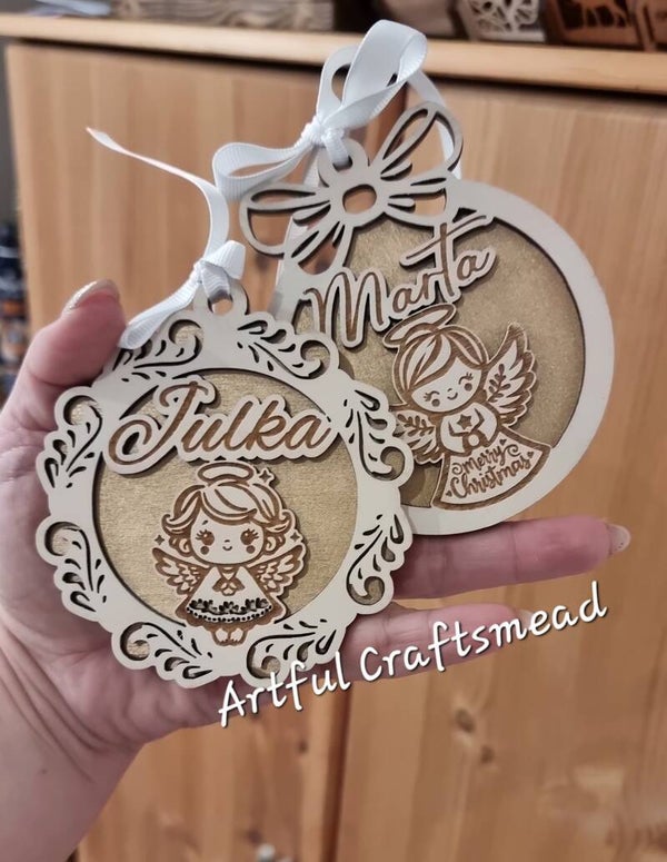 Personalised Angel Christmas Bauble – Wooden Tree Ornament – Custom Name Gift – 2 Designs