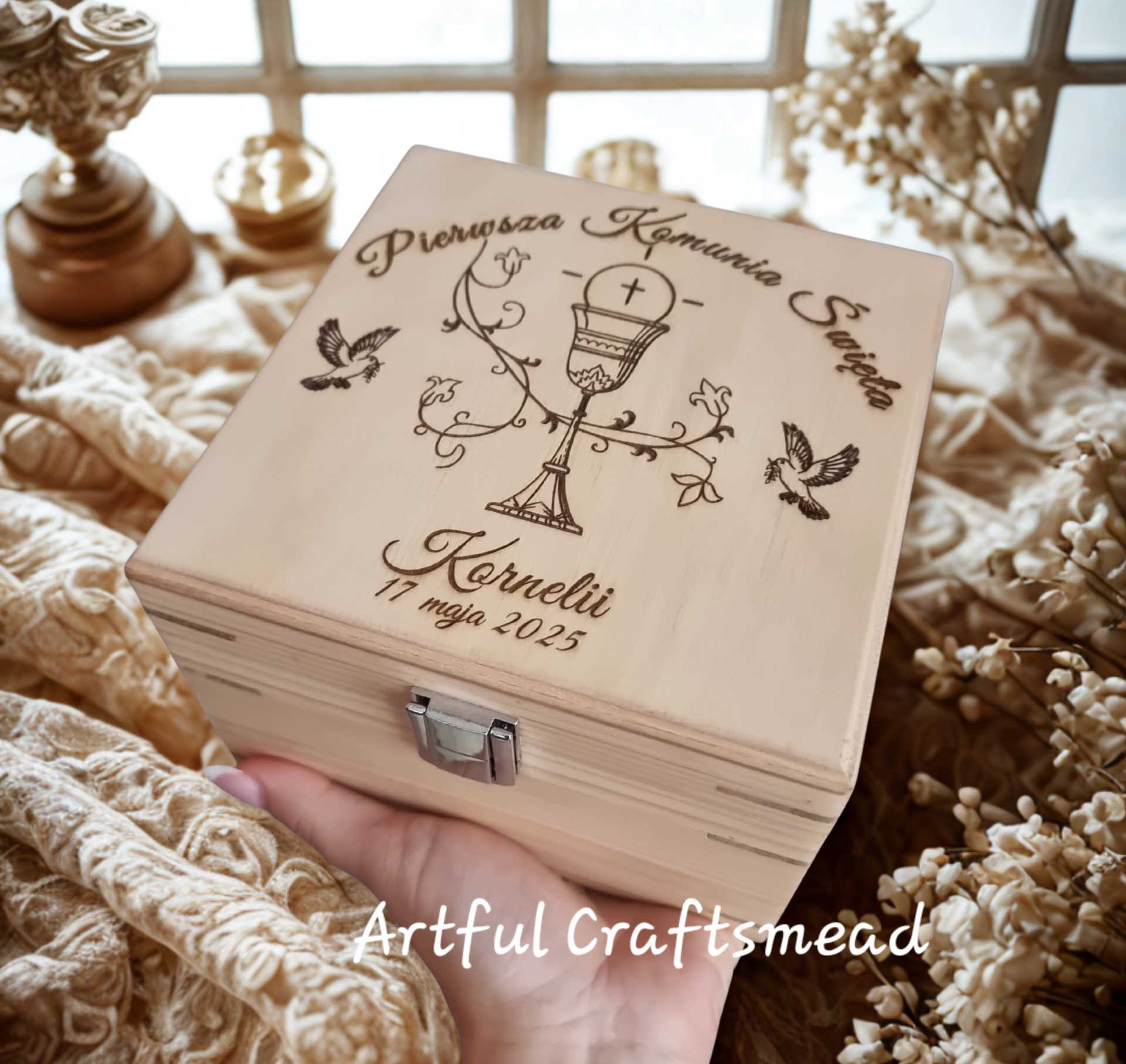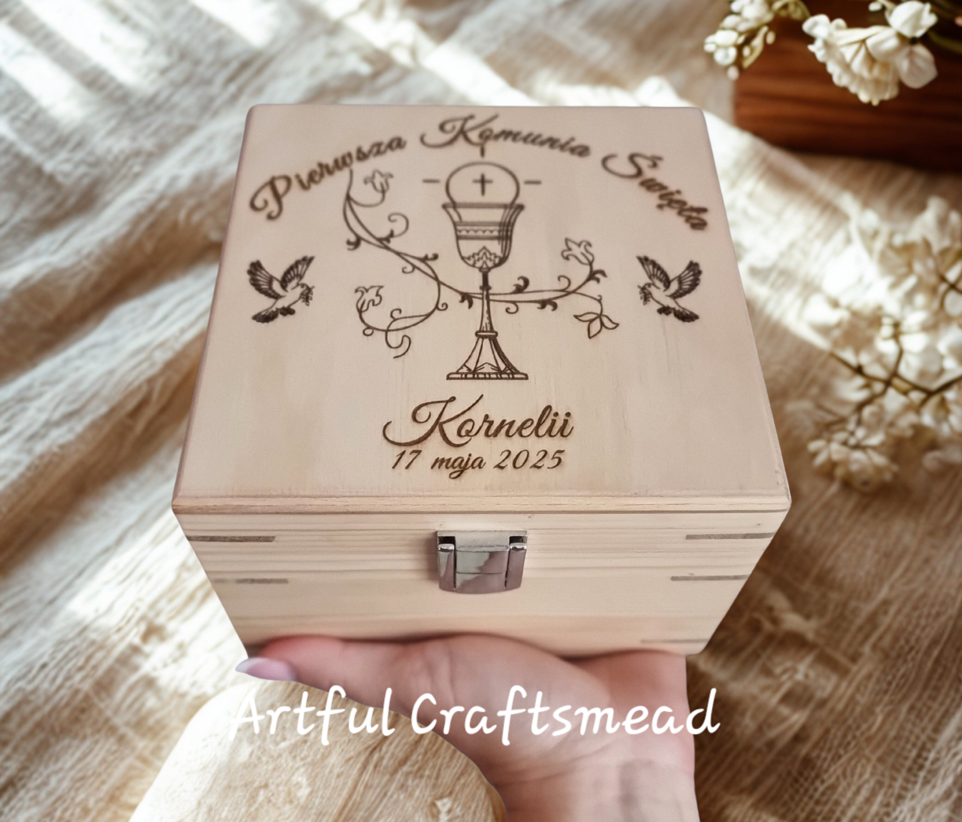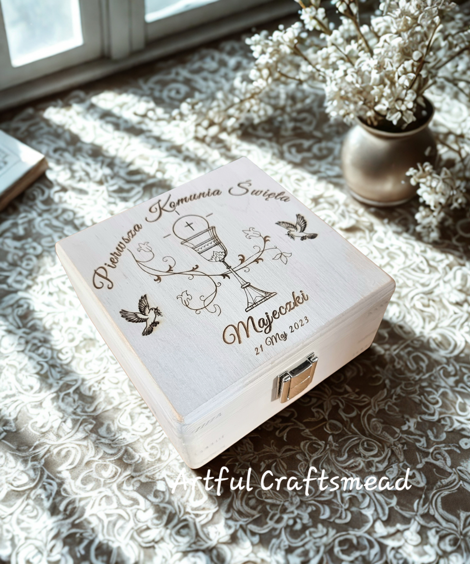 Personalised Wooden Communion Keepsake Box | Handmade Baptism & Confirmation Memory Box | Custom Engraved Solid Wood Box