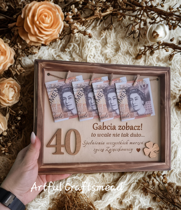 The frame allows you to clip or attach money notes inside, creating a fun and creative money gift presentation.